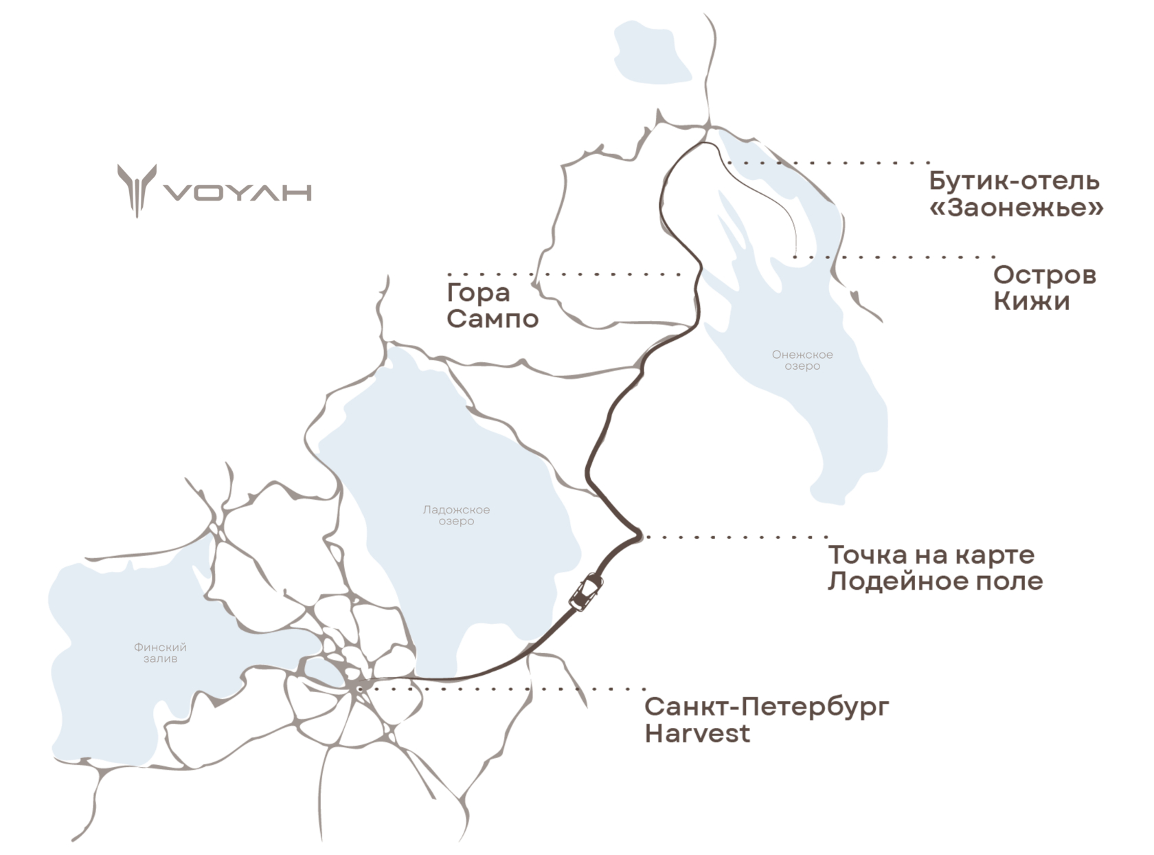 Бутик-отель «Заонежье» дарит своим гостям бесконечный простор для отдыха и созерцания северного ландшафта. А еще — в нескольких часах езды от отеля остров-музей деревянного зодчества Кижи, объект всемирного наследия ЮНЕСКО. Благодаря партнеру тура — комфортабельным гибридам VOYAH — участникам гастрономического путешествия удалось преодолеть дорогу легко и с максимальными удобствами.